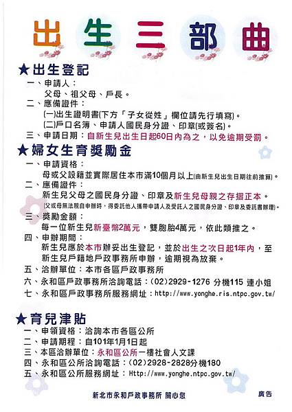 之前結婚登記時,新北是政府有給一張簡單明瞭的出生三部曲
