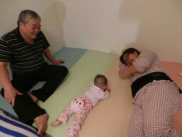 然後阿公阿嬤就一起上去了,原廠說的6層的環保海棉墊加上專利蛋型海棉墊,標榜是雞蛋在上面跳動不會破,果然,舒適的很