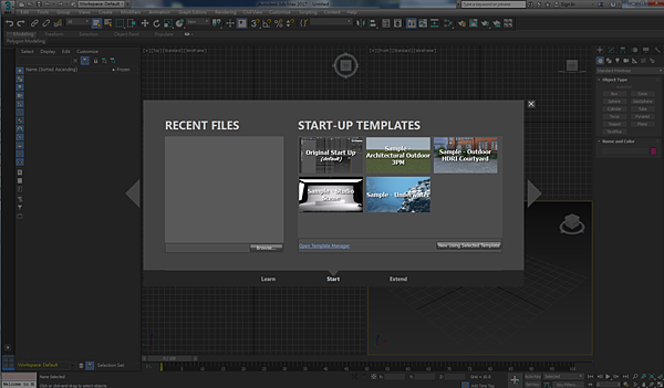 8. 由 3ds Max 2016 以後的版本,Max 與 Design 版本合為一個版本,第一次軟體開啟時會詢問要用哪種介面開啟,如果不知道的話,一般都選用"Classic"介面開啟,開啟軟體後可以再切換成不同介面。