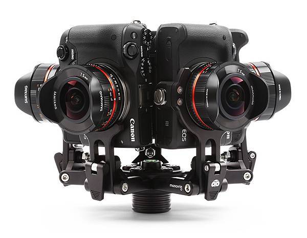 MoooVR是一間韓國的VR360全景攝影工作室,這台由5組佳能Canon EOS M2組合起來的VR360全景攝影系統,通過使用由Mooovrig獲得專利的7.5 mm魚眼鏡頭,每個相機可以拍攝180°角度,創造超級寬的高質量影像,可以縫合在一起成為一個完美的360°圖像。 用遙控器同時控制五台相機錄影,在Facebook和Youtube有由該設備拍攝的支持360度全景畫面的影片,錄製效果非常不錯。這台系統的價格大約需要上萬美元。官網:http://mooovr.com/
