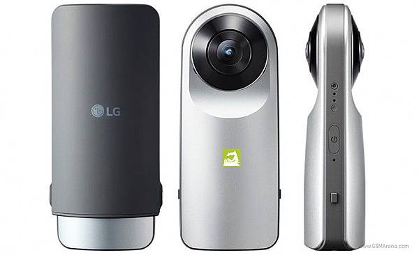 LG 360 CAM 是一款簡單容易入手的VR360全景相機,可以做360度球型環景,相機採用前後雙 206˚ 廣角魚眼相機設計,擁有1300萬畫素及f1.8光圈,可拍攝2K影片(約480P影片畫質)及1600萬靜態相片,3個麥克風可錄製5.1 聲道音效,可單手手持攝影機拍攝,透過Wifi與手機APP連接,支援 Android(5.0以上) 與 iOS(8.0以上),進行相機設定與影像擷取,可拍攝、錄製2K 360度環景照片/影片,並與 YouTube 和Google 街道實景應用程序兼容。內建4GB記憶體並可外接最大2TB的記憶卡,電池容量則有 1200mAh,約可錄製70分鐘影片。建議售價NT$8,990元。官網:http://www.lg.com/tw/lg-friends/lg-LGR105.ATWNTS