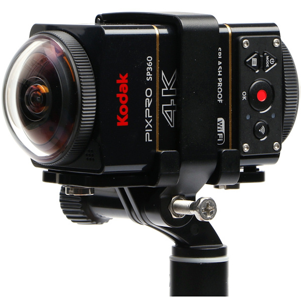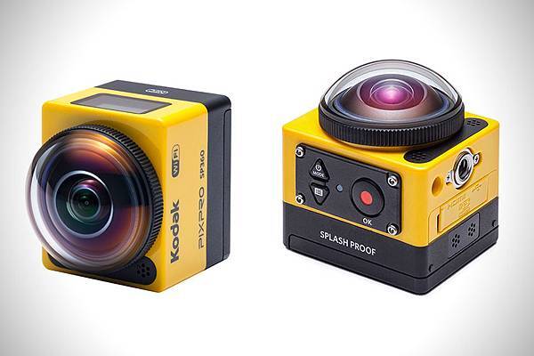 Kodak Pixpro SP360 為 Kodak 公司的第一代VR360全景相機,擁有360°球形透鏡,1600萬感光原件,可拍攝2K畫質高清影片,1000萬畫素照片,10張/秒連拍,最高2米防摔 / 最低-10°C防凍 / 防塵 / 防水,支援Wi-Fi(無線連接)/NFC(近距離無線通訊),直接與 iOS & Android 裝置無線連接控制,如果要拍攝360度球型環景影片需要2台相機拍攝,再用軟體合成。官方售價為NT$10990元。官網:https://kodakpixpro.com/Americas/cameras/actioncam/sp360/