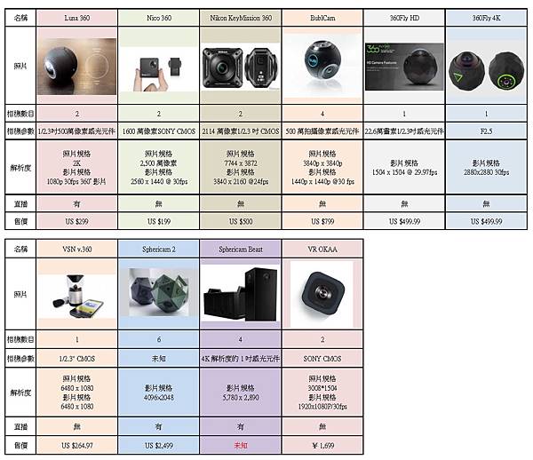 VR360全景攝影設備在2016年底已經可以算是百家爭鳴的時代的,雖然2016年初才號稱2016年是VR元年,才不到一年的時間,由只有幾家非常專業且昂貴的設備,到現在不用幾千新台幣就可以有的簡易VR360全景攝影設備,感嘆技術真的是變化太快阿!以下是JC個人將2016年底前所知道的VR360全景攝影設備,做一個簡單的整裡與介紹。初步將VR360全景攝影設備分為兩類,主要是設備費用做區隔。