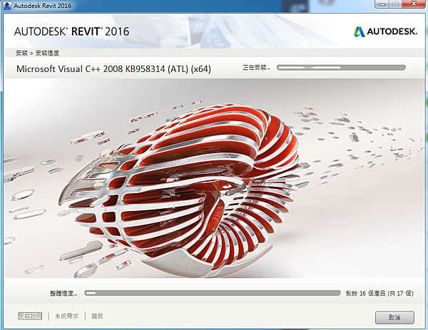 6. 經過一段時間後就會出現安裝完成的畫面,點擊右下角的「完成」即安裝完成 Revit 2016。